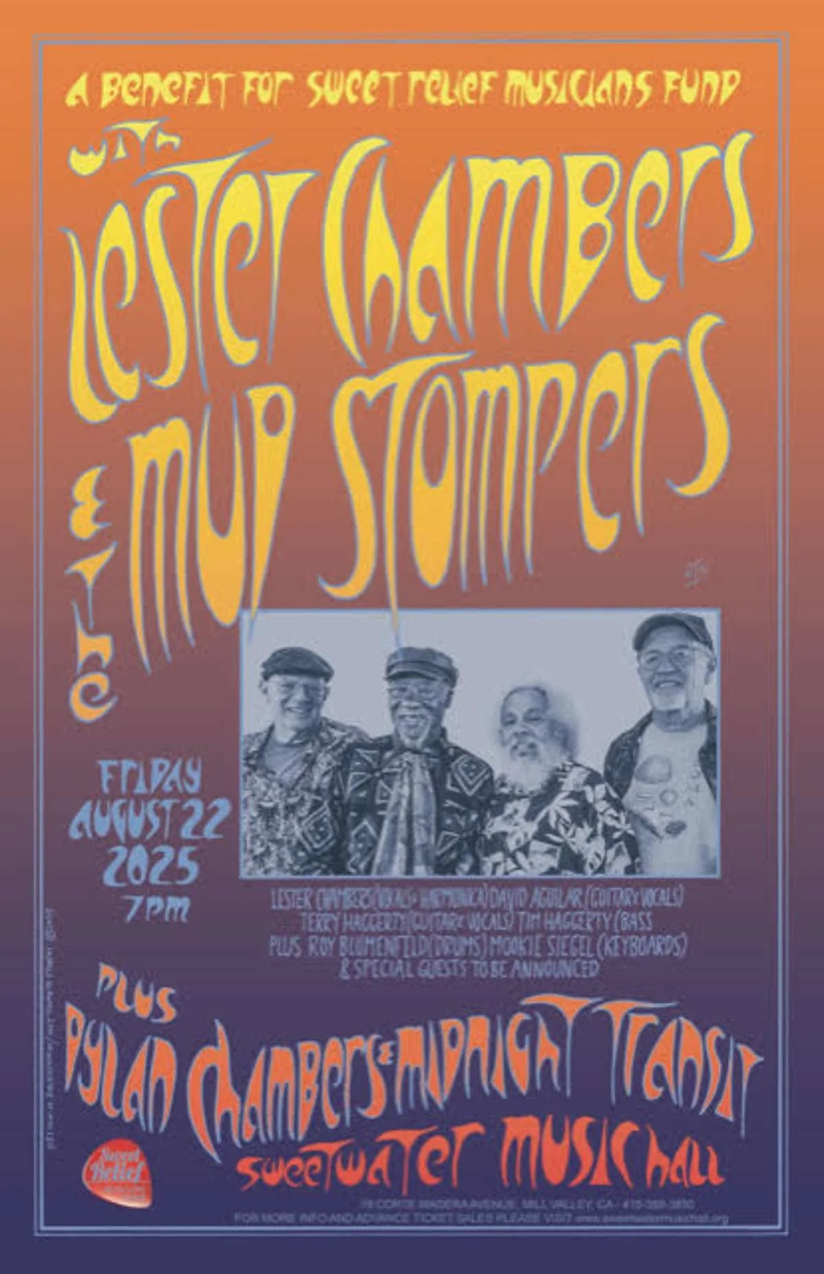 Come dance the night away for a great cause with Lester Chambers & The Mud Stompers at The Sweetwater in Mill Valley, CA. Dylan Chambers & The Midnight Transit will be also joining the lineup for what will be a stellar night of rock music.